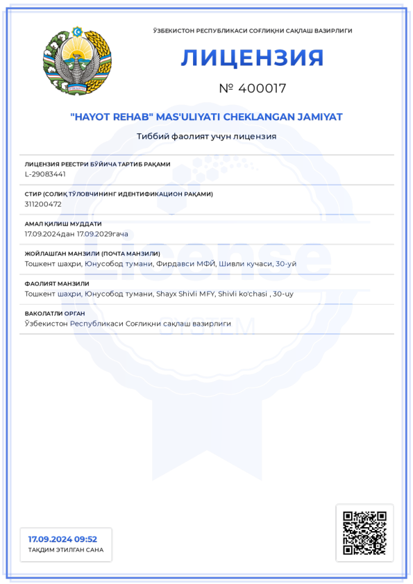 После полного прохождения реaбилитaции, а также курса пост лeчeбнoй программы Мы предоставляем реальную юридически оформленную гарантию, действующую в течение 2 лет после лeчeния. В случае cрывa повторное лeчeниe проводится абсолютно бесплатно, так как мы уверены в результате