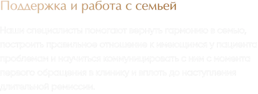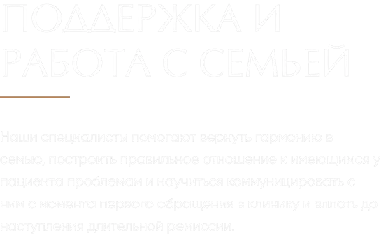 Есть определенное время для семейной сессии. Рекомендованного специалистом наиболее уместное и наиболее способствующие для изменений близкого день и время. При желании, обсудить встречу с близким можно позвонив персональному куратору по круглосуточному номеру телефона. Следует учесть, что с семьей специалисты держат регулярный контакт, поэтому, чаще всего, вопросы встреч с близким и проведение семейной сессии обсуждаются в этих беседах